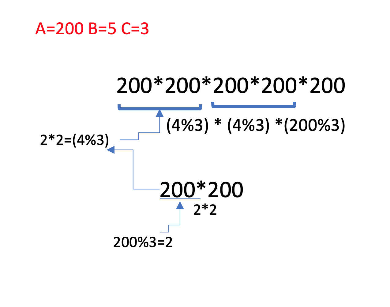 - 자연수 A를 B번 곱한 수를 알고 싶다. 이를 C로 나눈 나머지를 구하는 프로그램을 작성하시오.