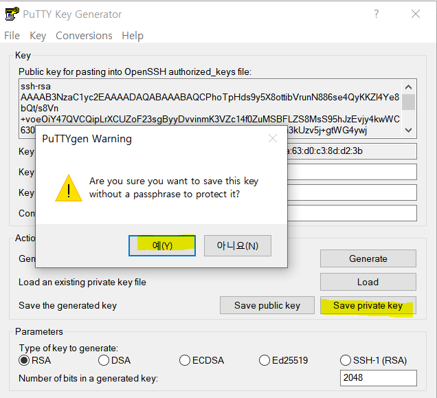 PuTTY gen으로 PuTTY에서 사용할 수 있는 형태로 바꿔주기
