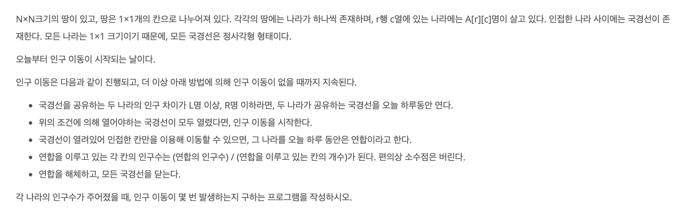 - 인구 이동이 발생하는 횟수가 2,000번 보다 작거나 같은 입력만 주어진다.