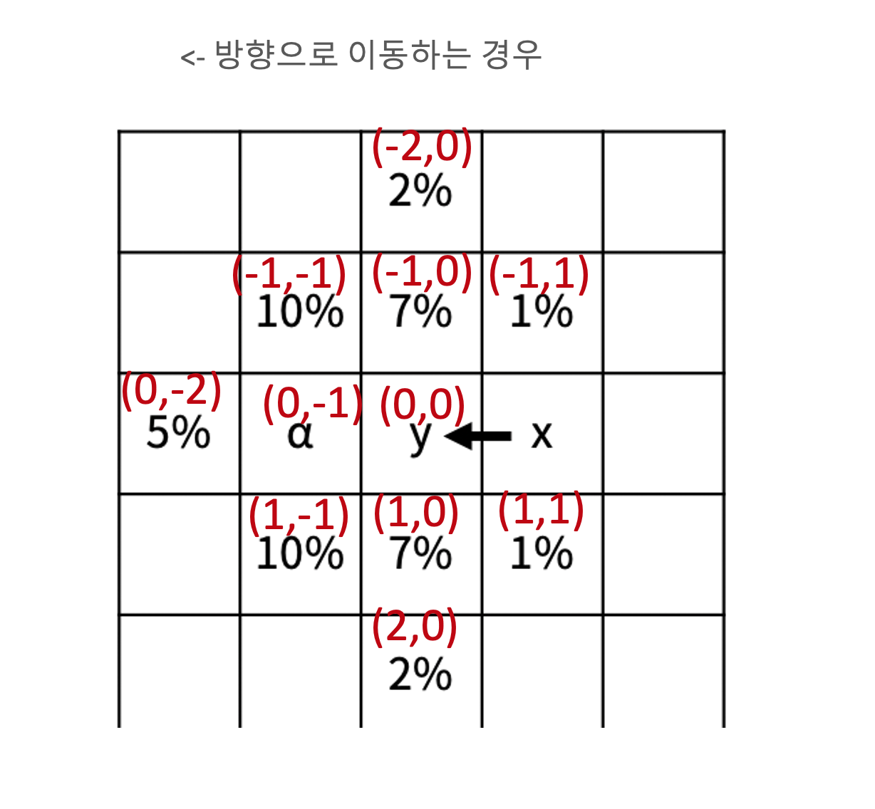 - 이런 경우에는 공통화 작업보다는 배열을 사용해서 모든 이동 방향과 모래양의 %를 저장하고 방향에 따라 이동하는 것이 좋다.