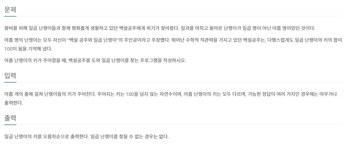 저번에 풀었던 '백설공주와 일곱 난쟁이' 문제인줄 알았습니다!!