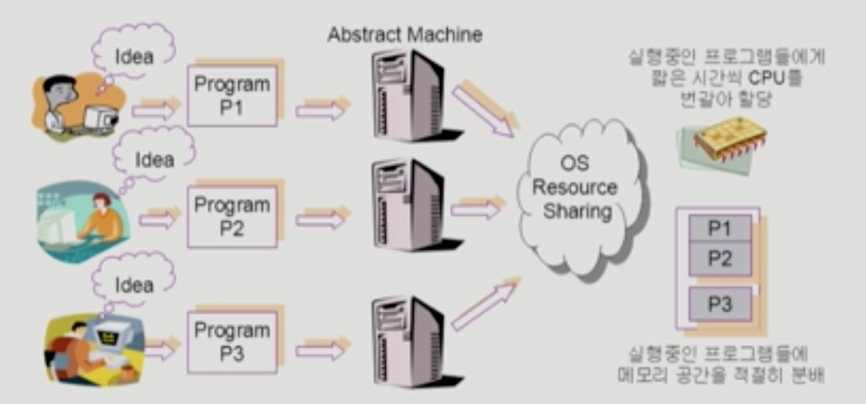 - 자원을 효율적으로 관리 하는 것 (CPU,메모리등 각종 입출력 장치를 효율 적으로 관리)