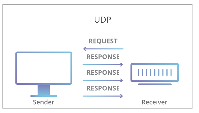 수신자가 데이터를 받을 준비가 되었는지를(연결을 설정하지 않고) 확인하지 않고 단방향으로 데이터를 전송한다.