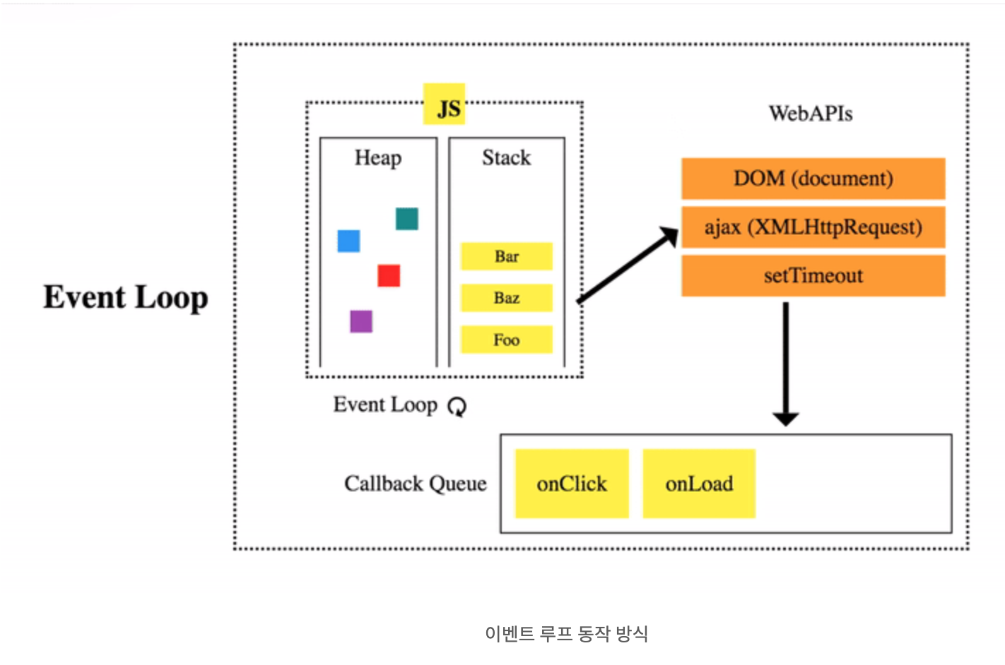 자바스크립트에서 비동기함수는 Call Stack이 아니라 Task Queue에 삽입된다. 자바스크립트에서는 이벤트에 의해 실행되는 함수들이 비동기로 실행된다. 이것은 자바스크립트 엔진이 아닌 Web API영역에 따로 정의 되어있다.