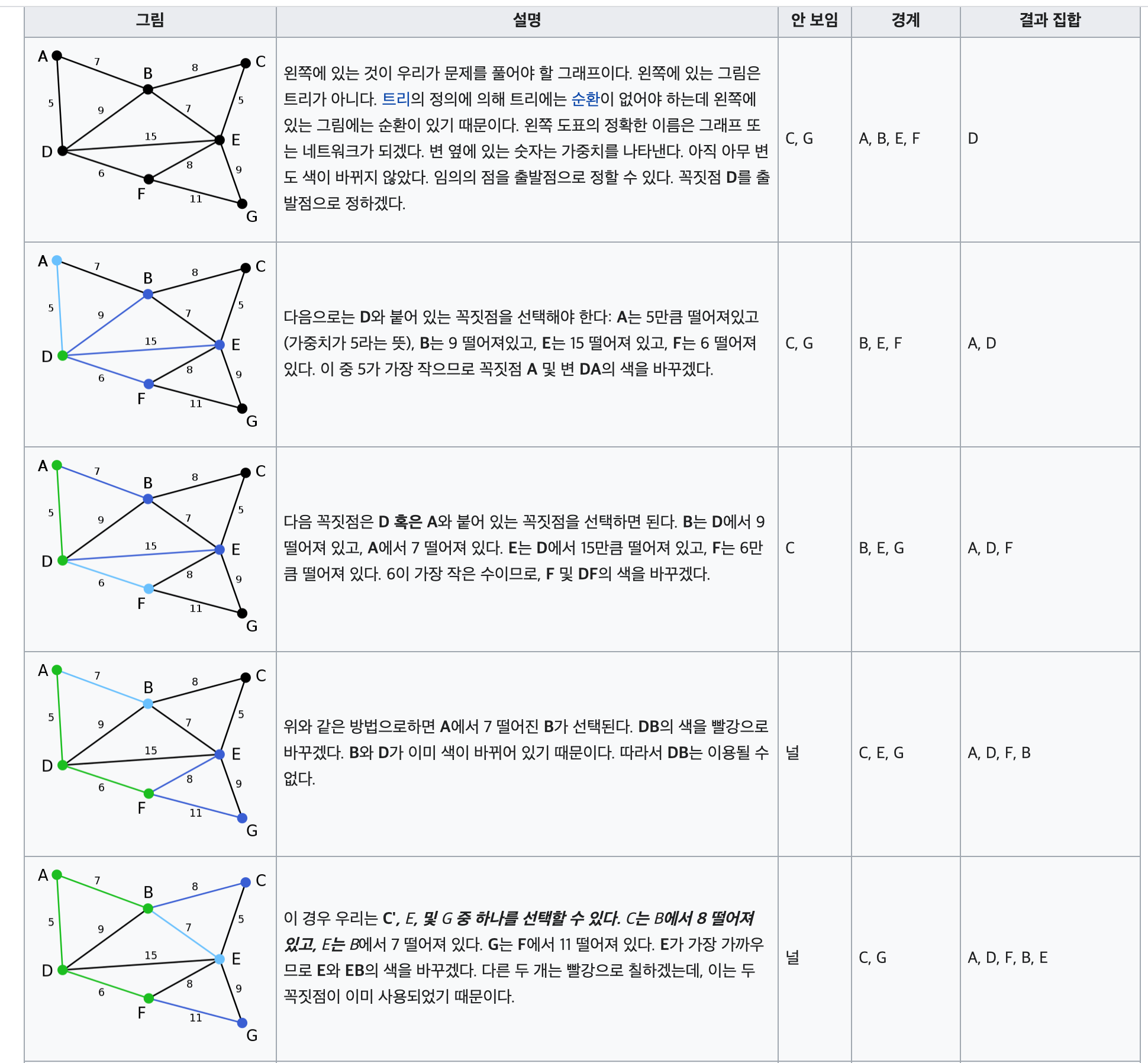 (step 1에서 찾은 간선도 같이 T에 포함됩니다.)
