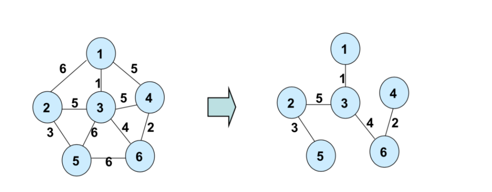 신장트리 가운데 가중치의 합이 최소인 경우를 신장 트리라고 한다.